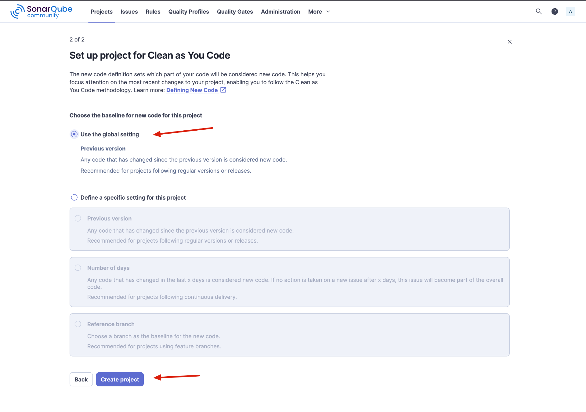 Faça login no SonarQube com as seguintes credenciais quando solicitado: